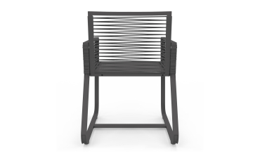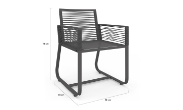 Matériaux : Structure en acier, assise en textilène et polyrotin sur les accoudoirs