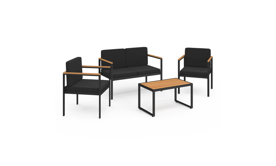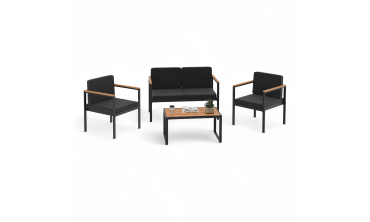 Le design élégant et contemporain de ce salon de jardin est complété par une finition noire et bois, qui s'harmonisera parfaitement avec tous les types de décoration de jardin.